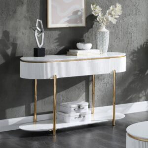 White High Gloss & Gold Finish Daveigh Accent Table LV02466 By ACME