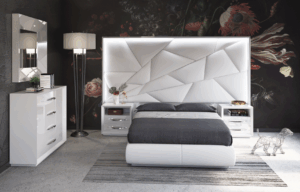 Mat Majesty White Bedroom Set w/light and Carmen Cases p11798 By ESF Furniture