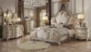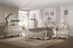 Synthetic Leather & Vintage Bone White Finish Dresden Bed by ACME