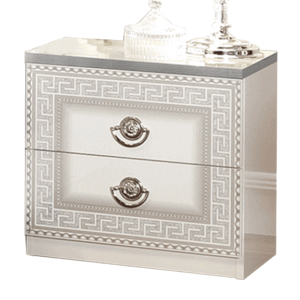 High Gloss Lacquer Aida White-Silver Nightstand i26126 By ESF Furniture