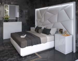 Mat Majesty White Bedroom Set w/light and Kiu cases p11796 By ESF Furniture