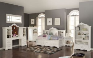 Fabric & Golden Ivory Finish Gorsedd Bed by ACME