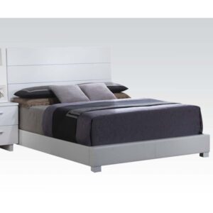 Fabric & Antique Pearl Finish Picardy Bed by ACME