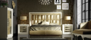 Light Cream Velvet Vogue Low Profile Bed By Diamond Sofa