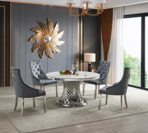 D1012-03 Faux Marble Silver 5PC Dining Set By McFerran