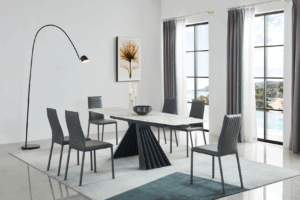 Mat, Shiny 152 Marble Dining Table with 196 Gray Chairs p11445 By ESF Furniture