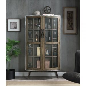Oak Finish & Aluminum Brancaster Cabinet AC02587 By ACME