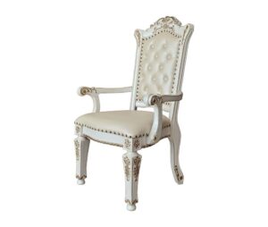 Leather & Bone White Finish Versailles Arm Chair DN01390 by ACME