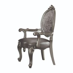 Silver Leather & Antique Platinum Finish Versailles Arm Chair 66823 by ACME