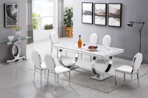 RDT316SM White Rectangular Marble Dining Table by Artisan Furniture