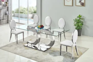 Silver Dining Table Tempered Glass RDT313S by Artisan Furniture