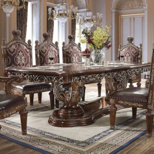 Burl & Metallic Antique Gold 9PCs Dining Table Set HD-1804 By Homey Design