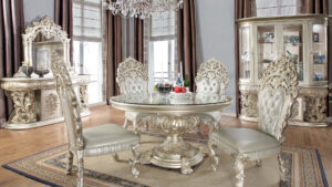 Metallic Silver 7PC Dining Table Set HD-8088 By Homey Design
