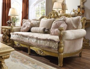 Metallic Bright Gold Loveseat Carved Wood Traditional HD-2659 By Homey Design