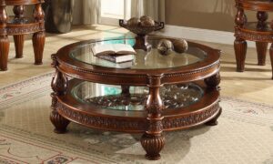 Brown Cherry Coffee Table Set 3Pcs Carved Wood Traditional HD-8013 By Homey Design