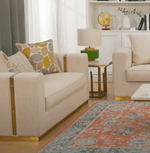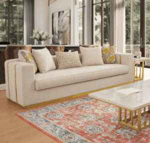 Gold And White Fabric Sofa HD-3156 By Homey Design