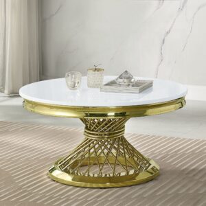 White High Gloss & Gold Daveigh Coffee Table LV02464 By ACME