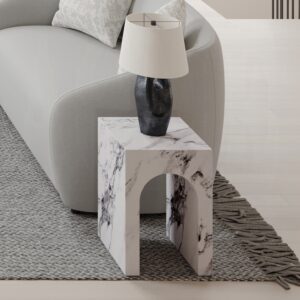 Fritzy Engineered Stone End Table in White Marble LV03127 By ACME