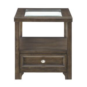 Charcoal brown Auburn Collection Glass top End table With Drawer By homelegance