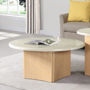 Oak Finish Qwin End Table W/Marble Top LV03005 By ACME