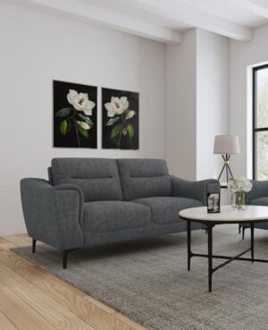 Nolan Upholstered Sloped Track Arm Loveseat Charcoal by Coaster Furniture