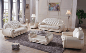 258 Full Ivory Leather Living Room Set p4377 By ESF Furniture