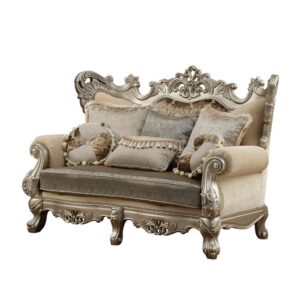 Fabric & Antique Pearl Finish Picardy Loveseat W/5 Pillows 55461 by ACME