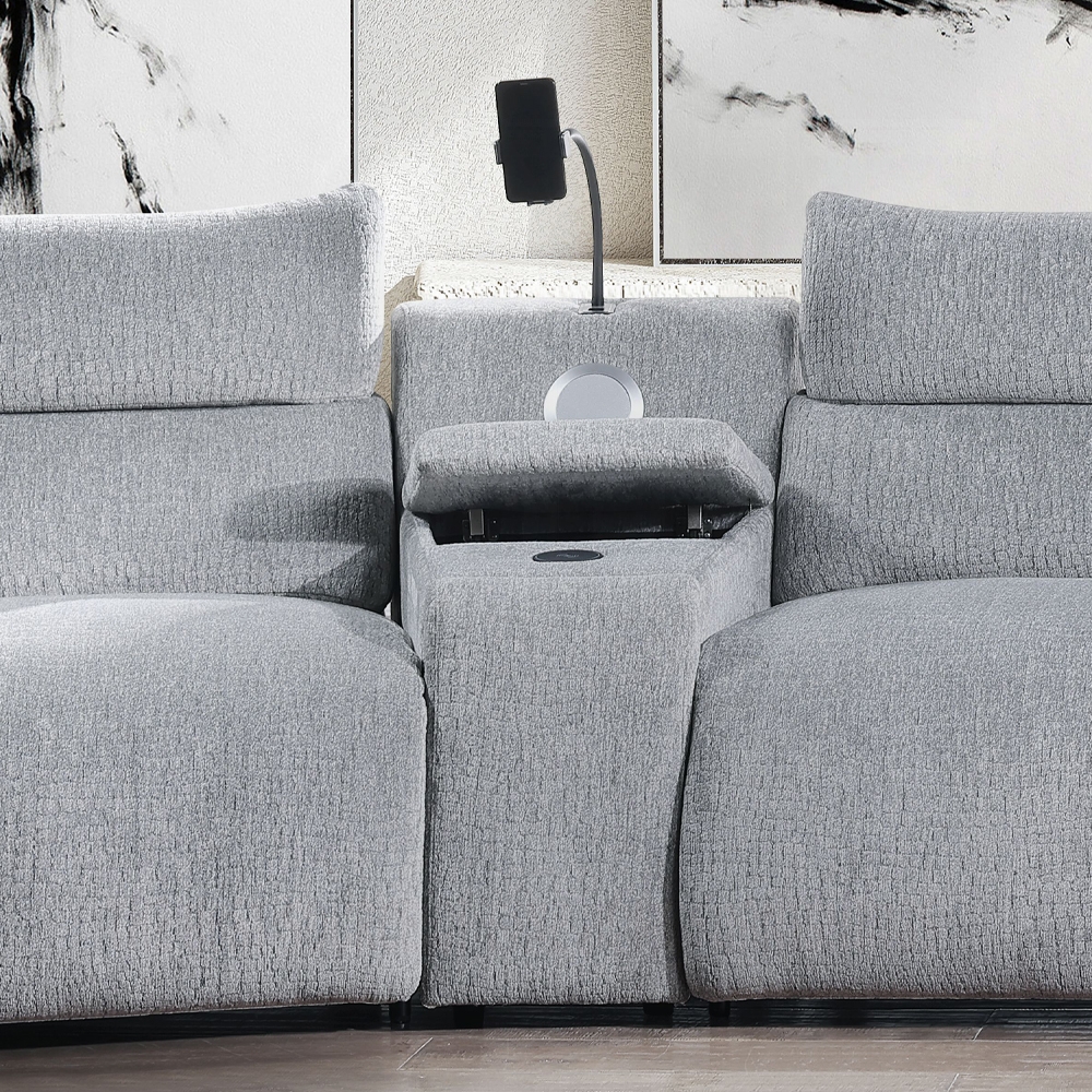 Fullar Light Gary Chenille Modular Console with Speaker & Cup Holder LV03311 By ACME