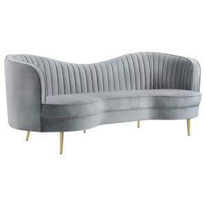 Sophia Upholstered Sofa with Camel Back Grey and Gold 506864 by Coaster Furniture