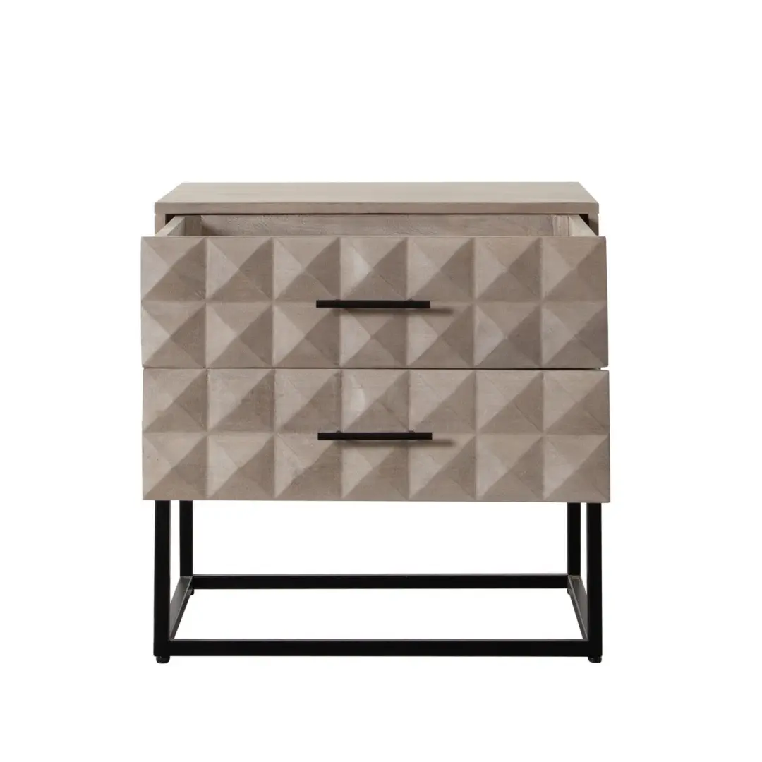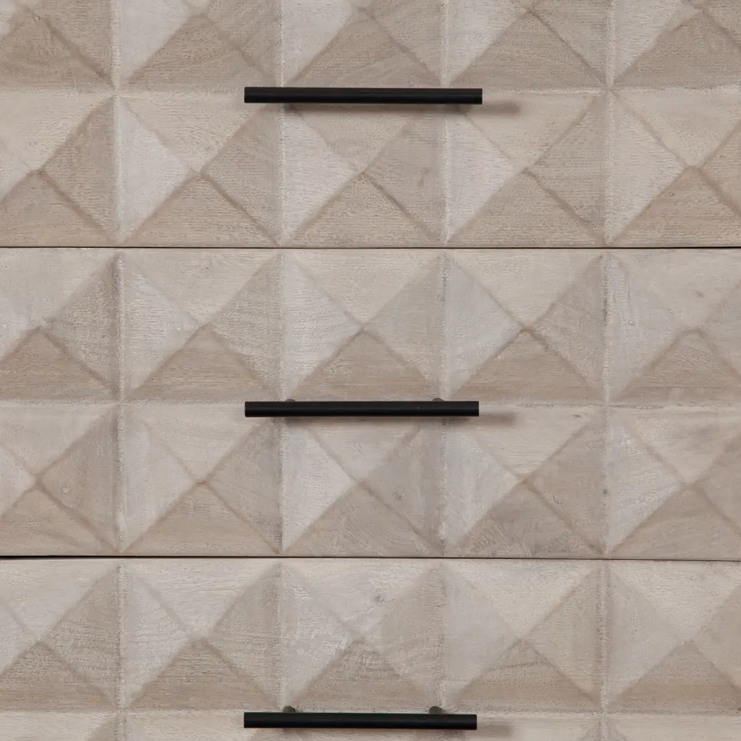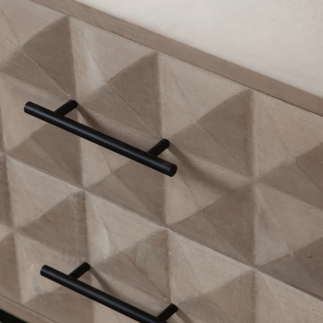 Intricately carved drawer fronts that add depth and texture to your bedroom décor.
