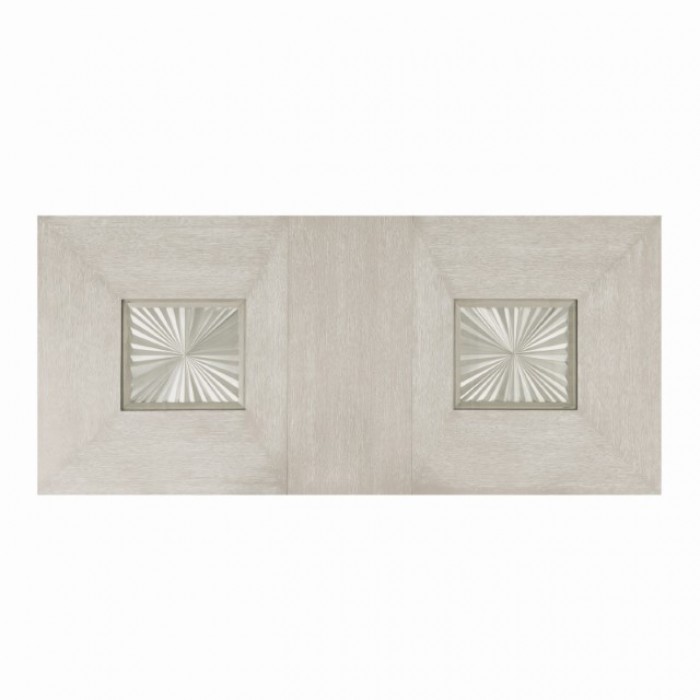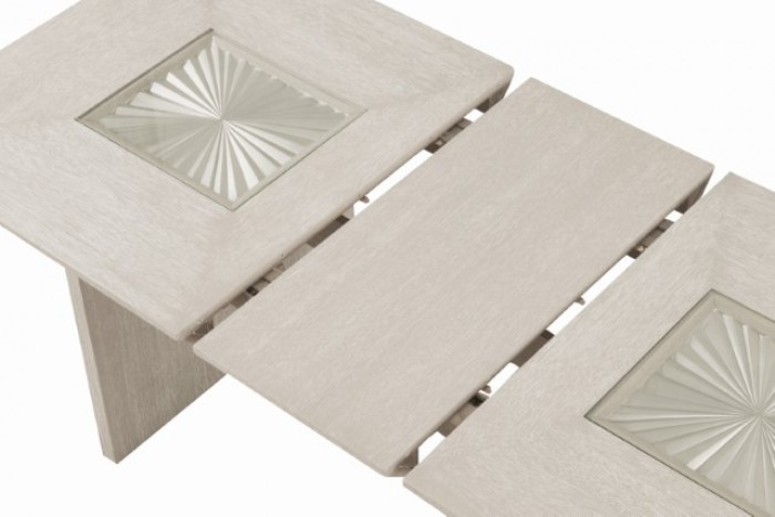 The table features a tempered glass insert and an extendable leaf, making it perfect for both intimate dinners and larger gatherings. The sunburst pattern adds subtle texture and visual interest, ensuring this table becomes the focal point of your dining space.