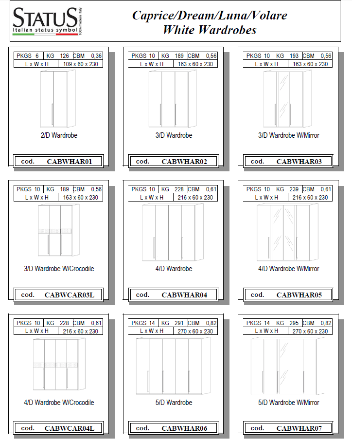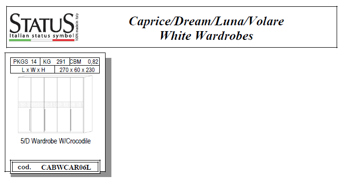 Modern Bedroom, White Status Caprice 5-Door Wardrobe w/Mirror