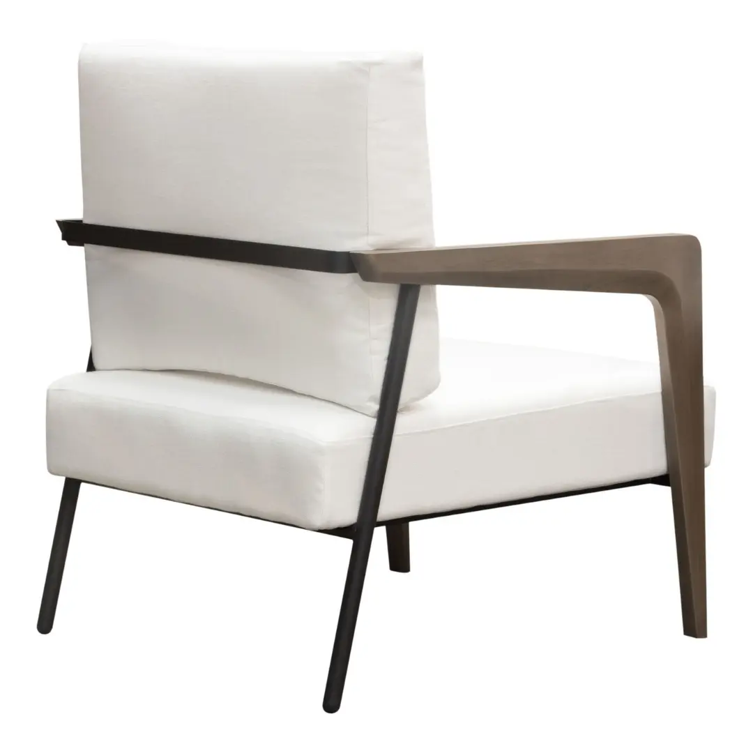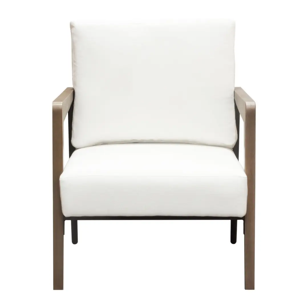 Elevate your living space with the Blair wood accent chair, a masterful blend of mid-century modern design and contemporary comfort. Crafted with clean lines and timeless details, this chair adds sophistication and functionality to any room. Its white fabric upholstery and natural wood trim create a striking, versatile piece that complements modern, retro, or minimalist interiors.