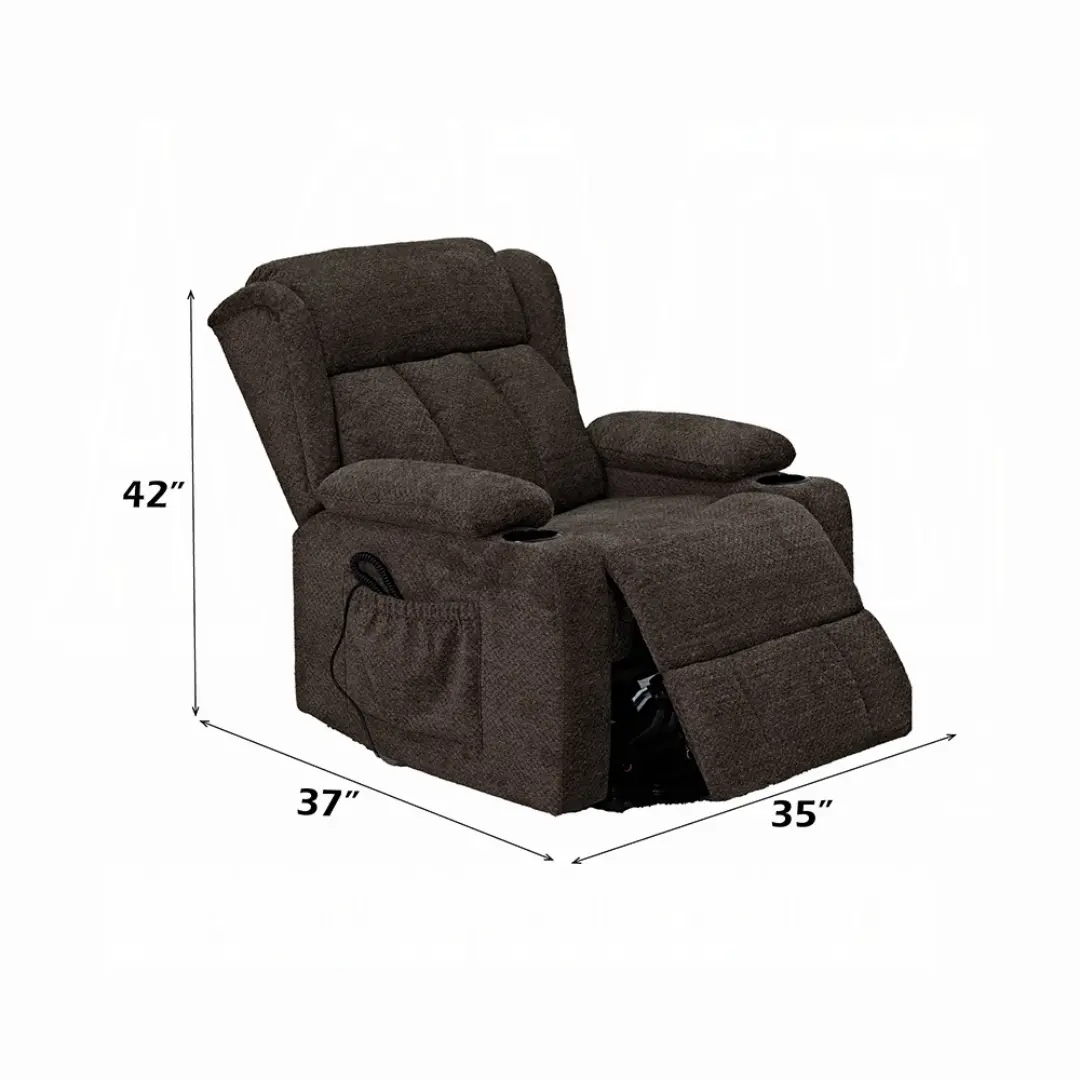 Lusio Brown Linen Power Recliner Lift Chair & Cup Holder by ACME