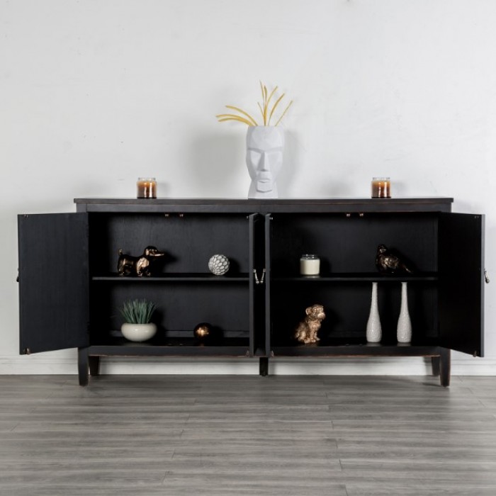 Viggo 4-Door Cabinet FM39006BK-SV – Modern Farmhouse Weathered Black Storage Cabinet