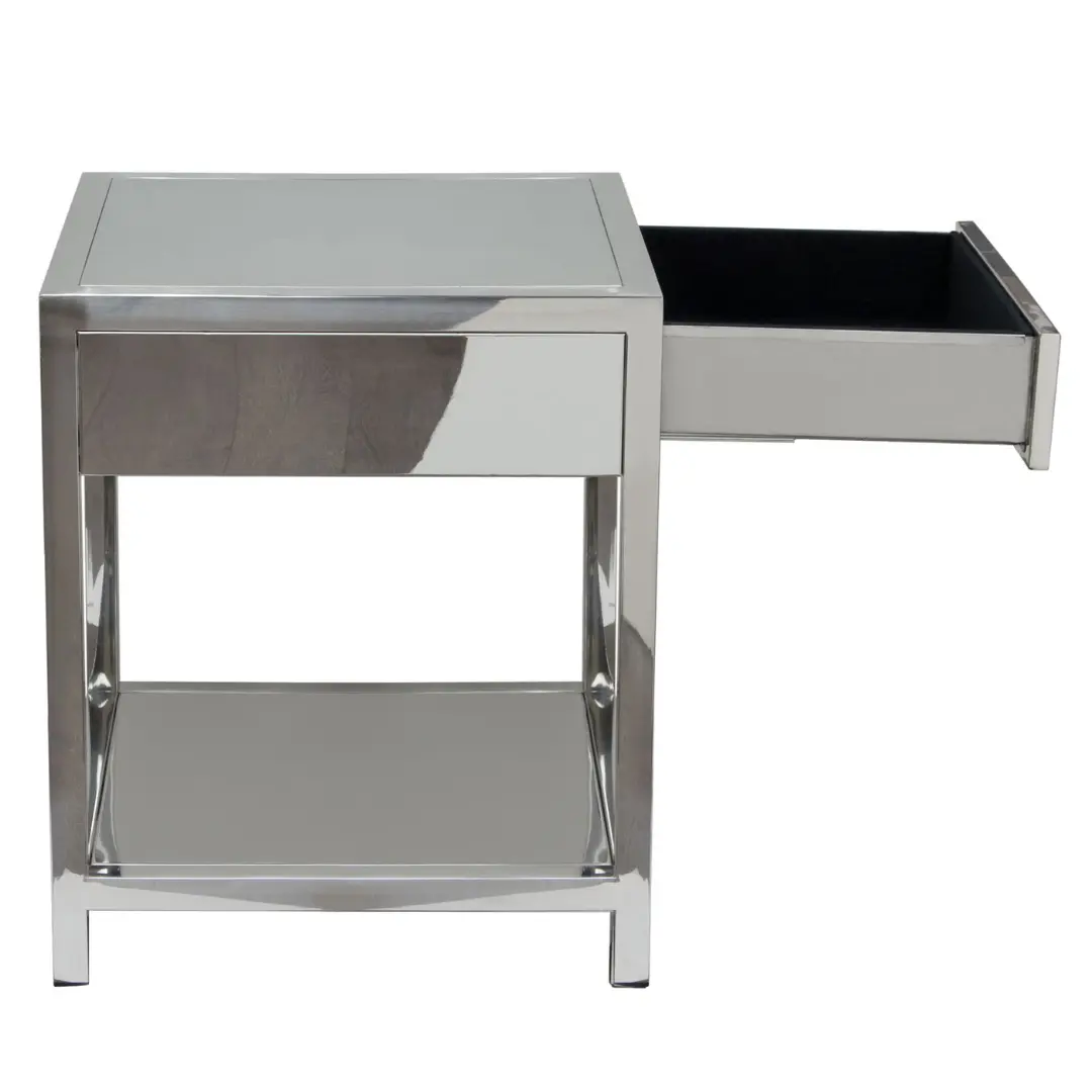 Corleo Accent Table with Drawer in Polished Stainless Steel