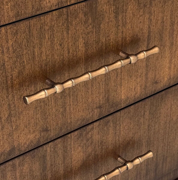 Faux Bamboo Hardware: The burnished gold faux bamboo handles provide a touch of luxury and intricate detailing.