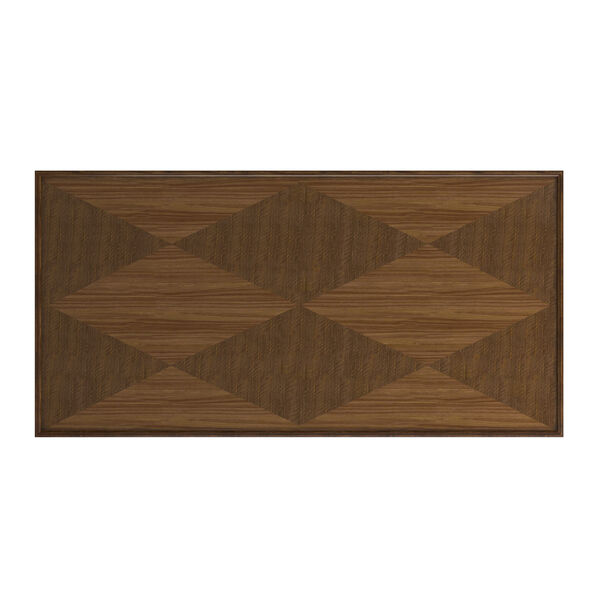 Diamond-pattern walnut veneer top offers visual depth and character.