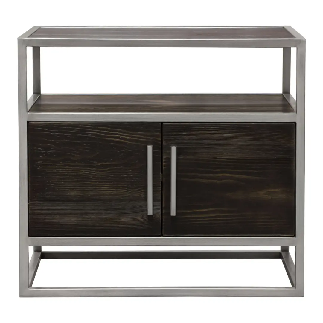 Finished in a rich weathered dark brown veneer and supported by a hand-brushed metal frame, it offers the perfect balance of warmth and structure. Whether placed beside a sofa or styled as a nightstand, this contemporary end table enhances your space with effortless style.