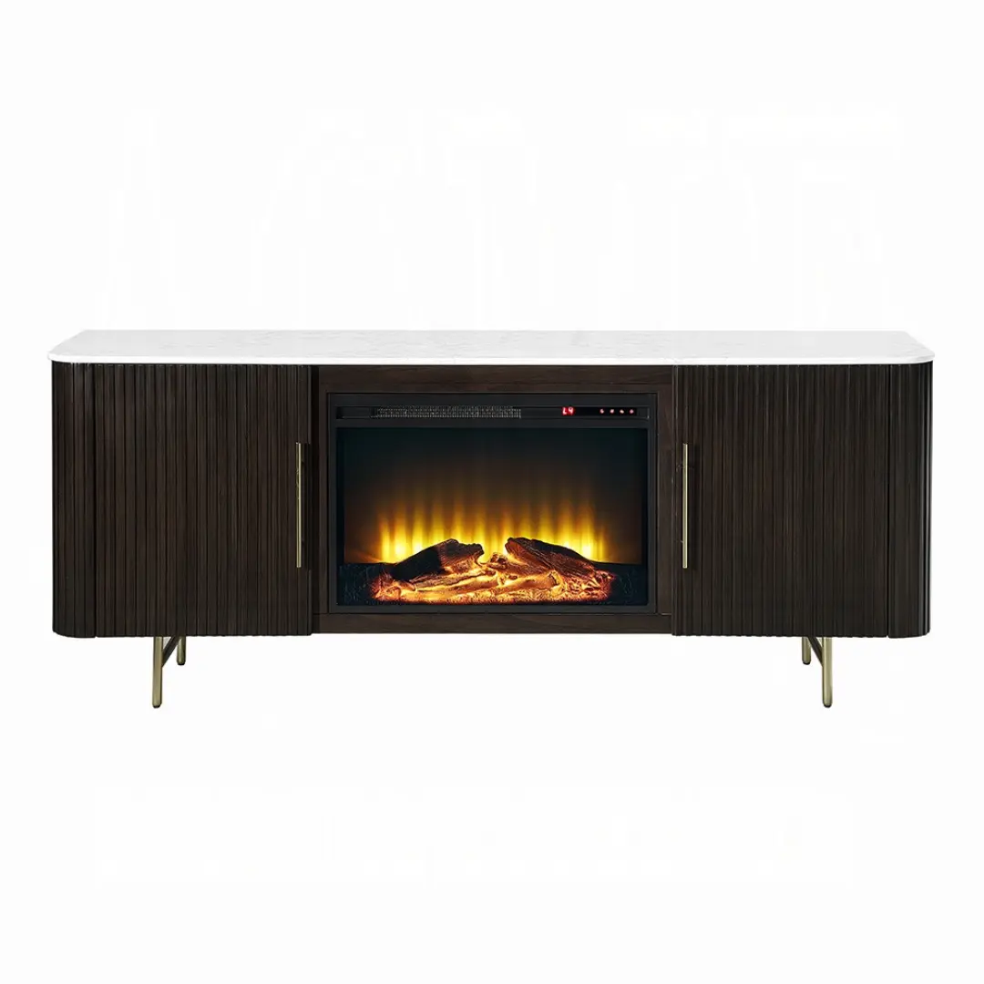 Clayten Espresso Server with Marble Top & Fireplace by ACME