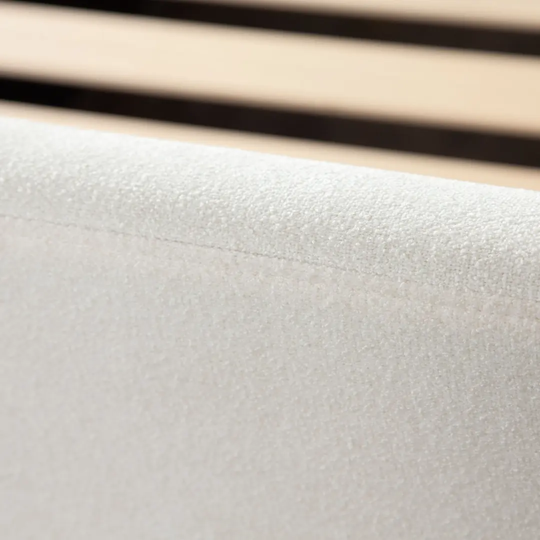 Create a calming retreat with the Eve Bed in Elite Ivory Fabric. Its sculpted design, tailored upholstery, and supportive construction make it a smart investment in both style and comfort