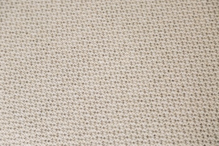 Modern Aesthetic – Beige chenille upholstery, flared arms, and black metal legs.