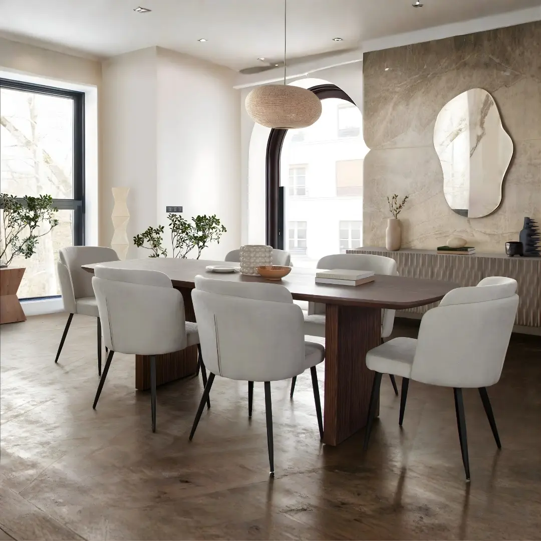 The Grace dining chairs use premium cream polyester fabric — known for its durability, soft feel, and easy maintenance — making it an excellent choice for busy dining areas and family homes. Polyester upholstery resists wear and is simple to clean with regular care, helping these chairs retain their elegant look over time.