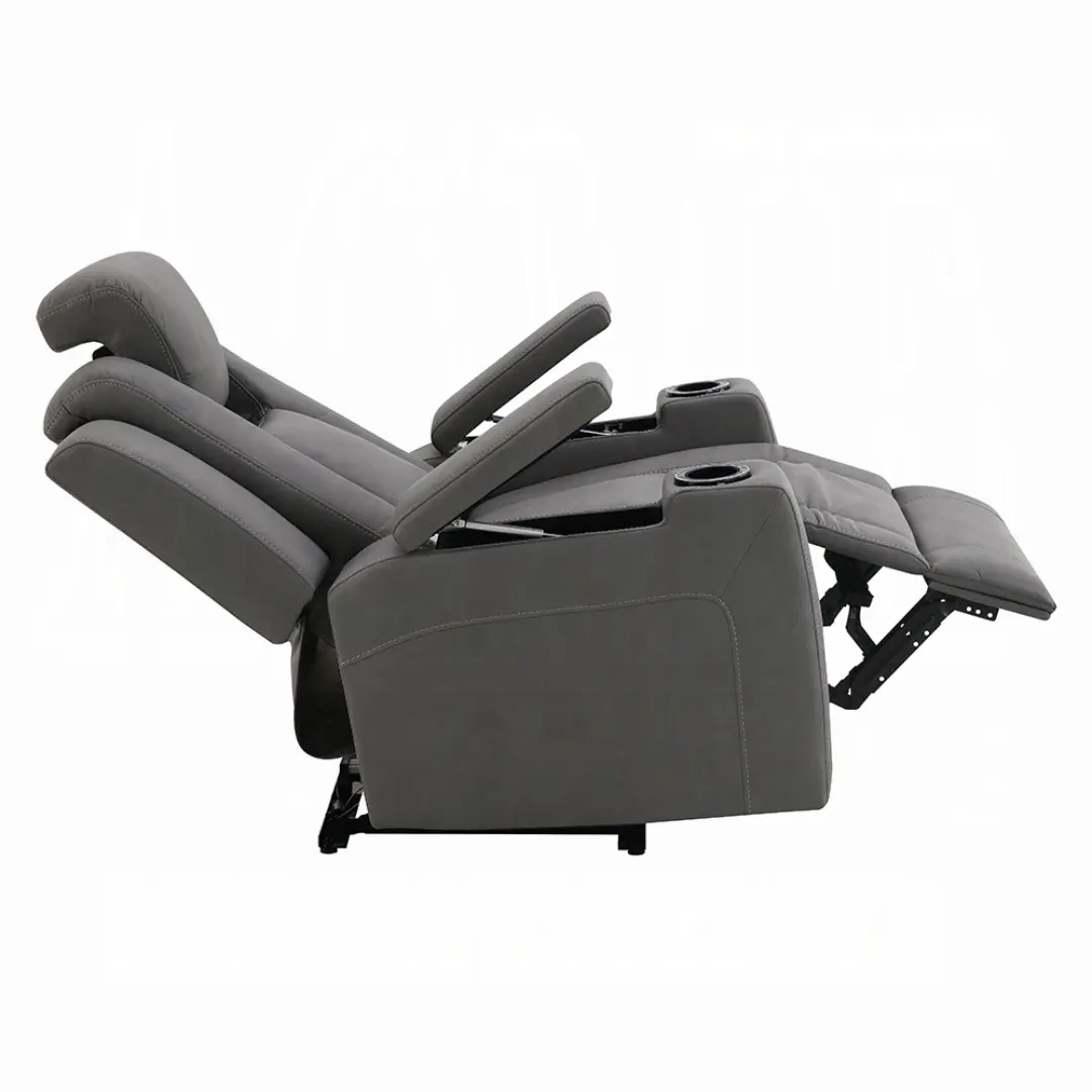 Leuco Gray Leather Power Headrest Recliner by ACME