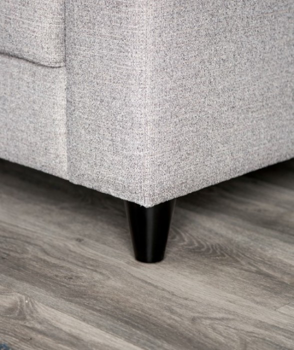Bring refined comfort to your home with the Harlow Sofa by Furniture of America. This transitional-style piece showcases a soft light gray chenille fabric that’s both inviting and durable, making it a perfect centerpiece for any modern or classic living space. Designed with practicality in mind, the Harlow features a reversible chaise sectional to adapt to your room layout, while high-density foam cushions with pocketed coils offer lasting support and relaxation. Wooden legs and clean track arms add a touch of contemporary charm. Ideal for lounging, entertaining, or everyday use, this sofa blends comfort and style effortlessly.