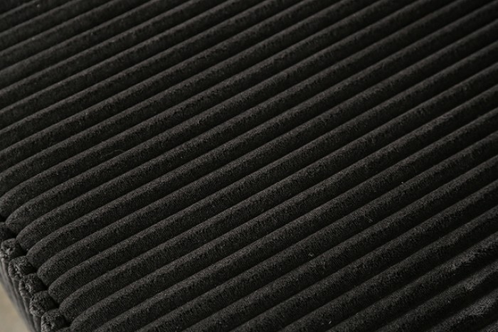 The Kimara Black Sofa brings sophistication to any room with its bold silhouette and 9-inch wide track arms. The black corduroy upholstery offers a luxurious feel and versatile look, easily complementing modern interiors.