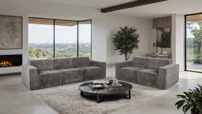 The Kimara Dark Gray Compressed Loveseat combines sleek contemporary style with smart space efficiency. Upholstered in durable corduroy fabric, its rich dark gray tone brings a modern sophistication that blends seamlessly into living rooms, apartments, or loft spaces.