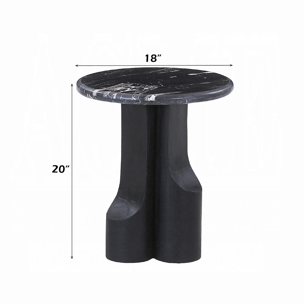 Built with a sturdy combination of solid mango wood, wood, and natural marble, this end table is crafted for both style and durability. The 32 mm thick marble tabletop provides a robust surface that’s ideal for displaying décor, lamps, or your favorite reads. The sandblasted black wooden legs add striking contrast and contemporary flair to the design.