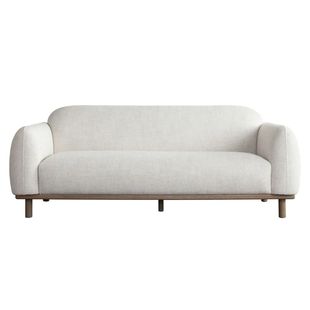 Almond oak wood trim and legs add a warm, natural accent to the sofa’s design.
