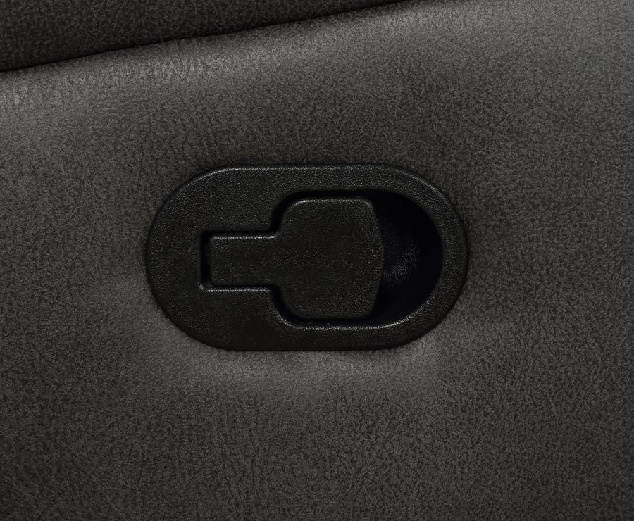 * Motion sofa upholstered in charcoal performance-grade coated microfiber
